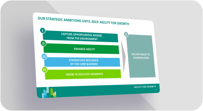 OUR STRATEGIC AMBITIONS UNTIL 2019: AGILITY FOR GROWTH I CAPTURE OPPORTUNITIES ARISING V FROM THE ENVIRONMENT II ENHANCE AGILITY DELIVER VALUE TO III SHAREHOLDERS STRENGTHEN RESILIENCE OF THE CORE BUSINESS IV GROW IN SELECTED SEGMENTS AGILITY FOR GROWTH 5