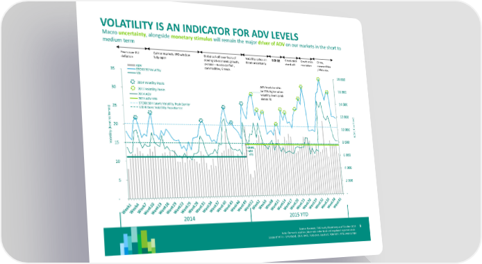 VOLATILITY IS AN INDICATOR FOR ADV LEVELS Macro uncertainty, alongside monetary stimulus will remain the major driver of ADV on our markets in the short to medium term Fears over EU Calmer markets. IPO window Global sell-off over fears of Volatility spikes on ECB QE Greek debt Greek crisis China, deflation fully open slowing US economic growth, Greek uncertainty stand-off resolution commodities Ukraine – Russia conflict , / EM crisis ADV commodities, Greece. 35 STOXX 50 Volatility 18 000 VIX 2014 Volatility Peaks ADV levels tend to 16 000 30 2015 Volatility Peaks be 21% higher when volatility levels peak 2014 ADV above 20 14 000 2015 ADV YTD ) 25 STOXX 50 Historic Volatility Peak Barrier s VIX Historic Volatility Peak Barrier m r 12 000 ) e n t o l i a l n l i i m 20 m o € 10 000 N ( ( V y D t i l A i t a l o 8 000 V 15 +29.6% ADV YTD 6 000 10 4 000 5 2 000 - - 2014 2015 YTD Source: Euronext, TAG Audit, Bloomberg as of October 2015 6 Note: Domestic equities (electronic order book and regulated reported deals. Scope of MTFs – Smartpool, Chi-X, BATS, Turquoise, Equiduct, TOM MTF, NYSE Arca Europe